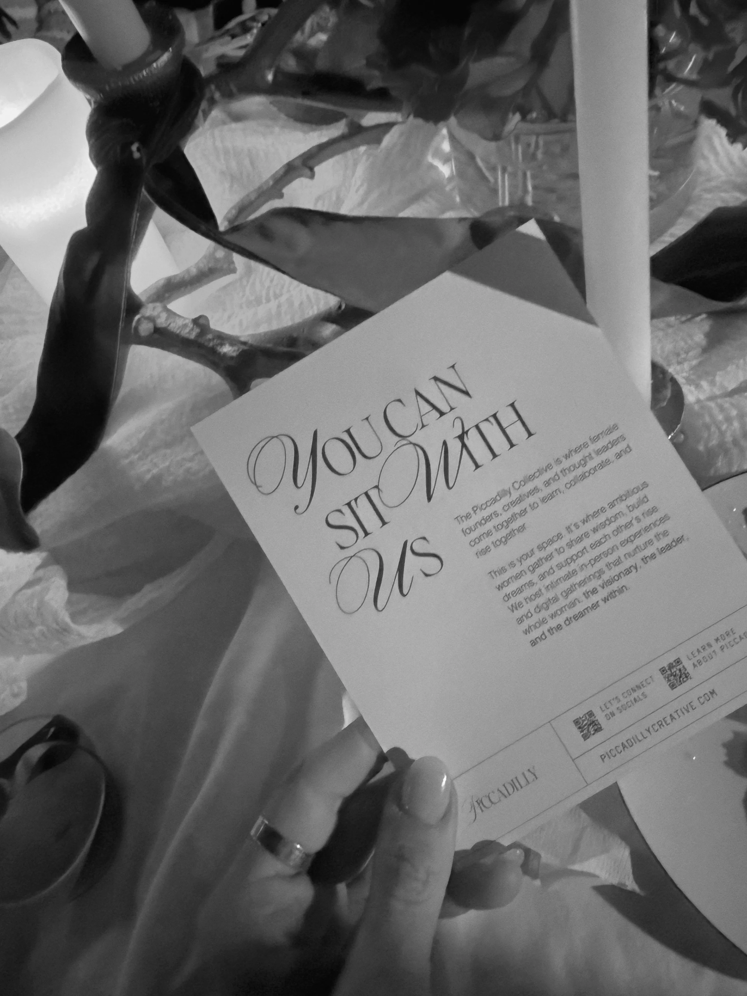 Join us for the Girl Dinner — an intimate evening of light bites, bubbles, and meaningful conversation. As we gather around charcuterie and connection, I’ll share the vision behind Piccadilly Creative — a creative community helping female thought leaders bring their brilliance to the world.